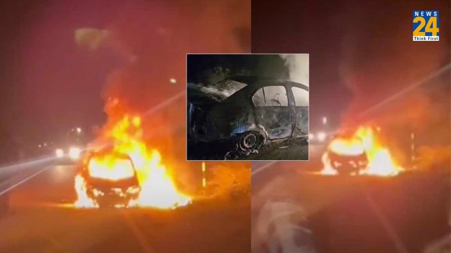 Haryana-Punjab Border Fire Broke in Car: हरियाणा-पंजाब की सीमा से लगे फतेहाबाद में उस वक्त अफरा-तफरी मच गई जब अचानक चलती कार में आग लग गई। आग इतनी भयंकर थी कि हादसे के बाद कार की हालत देख किसी की भी रुह कांप जाए। इस हादसे का एक वीडियो भी सोशल मीडिया पर तेजी से वायरल हो रहा है। वायरल वीडियों में साफ देख सकते है कि किस तरह से बीच सड़क पर कार देखते ही देखते आग का गोला बन गई। गनीमत ये रही कि इस कार में सवार पति-पत्नी आग लगते ही बाहर निकल आए और अपनी जान बचा ली।