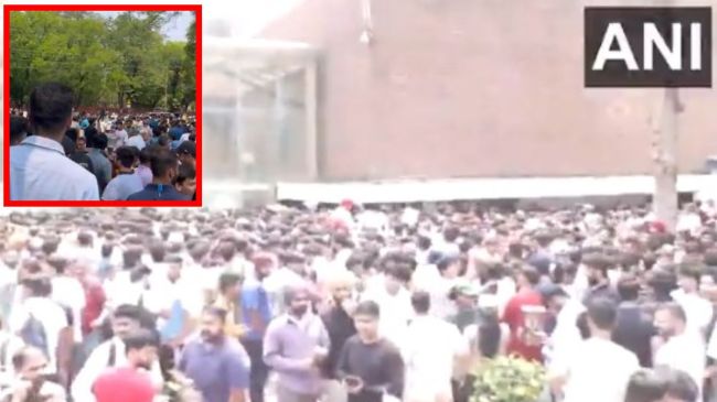 #WATCH | Huge lines seen in Chandigarh when local announcements were made for volunteers to aid in the assistance. pic.twitter.com/Q7YXWRg50J