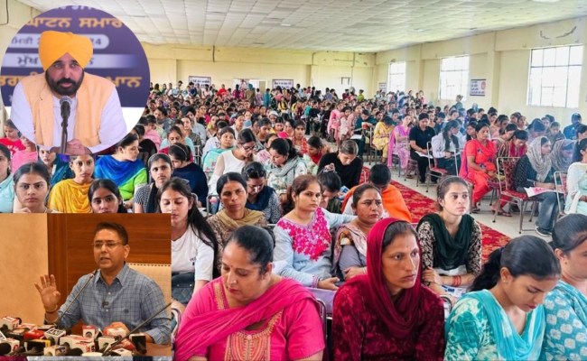 Mega Placement Camp For Women: प्रदेश की मान सरकार लगातार विकास कार्यों में जुटी हुई है। पंजाब में महिलाओं की सुरक्षा से लेकर रोजगार के लिए भी कई योजनाएं सरकार ला रही है। इसी के तहत मुख्यमंत्री भगवंत सिंह मान द्वारा महिला सशक्तिकरण के दृष्टिकोण को अपनाते हुए पंजाब सरकार ने मंगलवार को होशियारपुर, बरनाला और श्री मुक्तसर साहिब जिलों में महिलाओं के लिए तीन मेगा प्लेसमेंट कैंप आयोजित किए। रोजगार सृजन, कौशल विकास और प्रशिक्षण मंत्री अमन अरोड़ा ने बताया कि कुल 1223 महिलाओं को प्लेसमेंट के लिए चुना गया, जबकि 50 से ज्यादा महिला उम्मीदवारों को स्वरोजगार सहायता के लिए चुना गया। सामाजिक सुरक्षा, महिला और बाल विकास विभाग के सहयोग से रोजगार सृजन, कौशल विकास और ट्रेनिंग द्वारा आयोजित इन मेगा प्लेसमेंट कैंपों में 2829 से अधिक प्रतिभागियों ने भाग लिया।