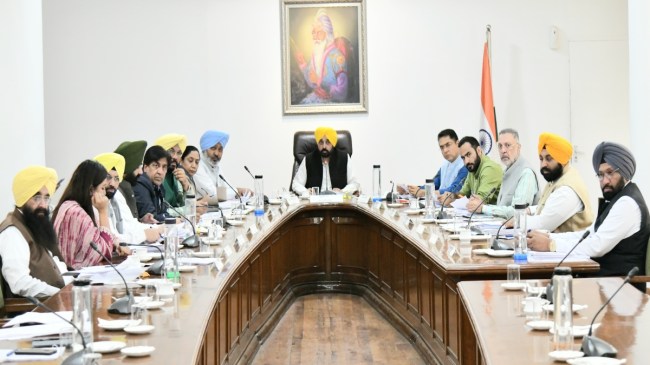 Punjab CM Bhagwant Singh Mann Cabinet Meeting, चंडीगढ़: पंजाब के मुख्यमंत्री भगवंत सिंह मान ने सोमवार को मंत्रिमंडल की एक खास मीटिंग बुलाई। इस कैबिनेट मीटिंग में कई अहम फैसले लिए गए जिसकी जानकारी कैबिनेट मंत्री हरपाल चीमा ने प्रेस कॉन्फ्रेंस करके शेयर की है। आज की कैबिनेट मीटिंग में सीएम मान ने 16वीं विधानसभा का 5वां समागम बुलाने की मंजूरी दी है। साथ ही इसी महीने विधानसभा सत्र बुलाने का फैसला लिया गया है। ये सेशन 2 दिन तक चलेगा। जानकारी के अनुसार, ये सत्र 28 और 29 नवंबर 2023 को बुलाया गया है।