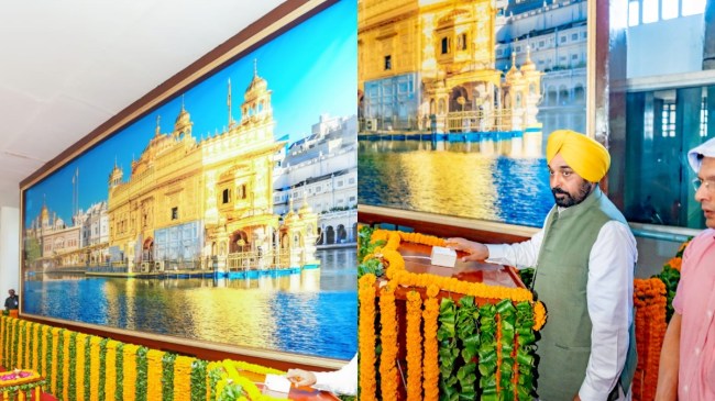 Punjab CM Bhagwant Singh Mann, चंडीगढ़: पंजाब के सीएम भगवंत सिंह मान ने बुधवार को राज्य के सिविल सचिवालय-1 में सिफ्ती के घर श्री हरिमन्दिर साहिब की नयी लगी तस्वीर लगाई है। सीएम ने सिविल सचिवालय-1 में लगी इस नई तस्वीर को प्रदेश की जनता के नाम समर्पित किया है। तस्वीर का अनावरण करते वक्त सीएम ने कहा कि श्री हरिमन्दिर साहिब सभी पंजाबियों के लिए सबसे पवित्र स्थान है, इसलिए ये तस्वीर प्रदेश के लोगों को समर्पित है।