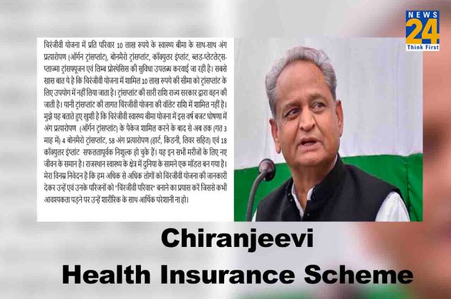 जयपुर: राजस्थान के मुख्यमंत्री अशोक गहलोत ने एक बार फिर प्रदेशवासियों से अपील करते हुए कहा कि हम अधिक से अधिक लोगों को चिंरजीवी योजना (Chiranjeevi Health Insurance Scheme) की जानकारी देकर उन्हें एवं उनके परिजनों को “चिंरजीवी परिवार” बनाने का प्रयास करें जिससे कभी आवश्यकता पड़ने पर उन्हें शारीरिक के साथ आर्थिक परेशानी ना हो।