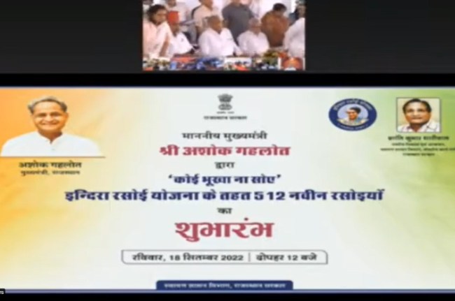 उल्लेखनीय है कि गहलोत ने 20 अगस्त 2020 को प्रदेश में ‘कोई भूखा ना सोय‘ की संकल्पना को मूर्त रूप देकर 213 नगरीय निकायों में 358 स्थायी रसोइयों के माध्यम से इंदिरा रसोई योजना का शुभारंभ किया था।