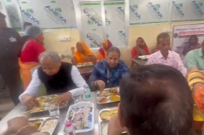 जयपुर में जलमहल के पास संचालित इंदिरा रसोई पहुंचकर यहां सभी व्यवस्थाएं देखीं, भोजन ग्रहण करने आए लोगों से बात कर स्कीम और व्यवस्थाओं के बारे में फीडबैक लिया एवं पत्नी श्रीमती सुनीता गहलोत, मंत्री डॉ महेश जोशी जी, उप मुख्य सचेतक महेंद्र चौधरी जी के साथ यहां खाना भी खाया। pic.twitter.com/OUYSbyGQwl