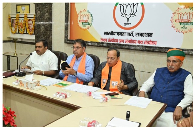 राजस्थान में विधानसभा चुनाव को अब भी एक साल से अधिक का वक़्त बाकी है, लेकिन साल 2023 के विधानसभा चुनावों में 200 में से 180 सीटें और उसके अगले साल होने वाले लोकसभा चुनावों में 25 में से 25 सीटें जितने के लक्ष्य को लेकर बीजेपी ने अभी से रोडमैप बनाना शुरू कर दिया है। जयपुर में बीजेपी की कार्यसमिति की बैठक हुई। जिसमें प्रभारी अरुण सिंह प्रदेश के सामने सूबे की कांग्रेस सरकार में चल रही खींचतान और 19 अक्टूबर को कांग्रेस के राष्ट्रीय अध्यक्ष का चुनाव नतीजा क्लीयर होने के बाद पैदा होने वाली तमाम स्थितियों को लेकर बीजेपी की रणनीति पर लम्बी चर्चा हुई।