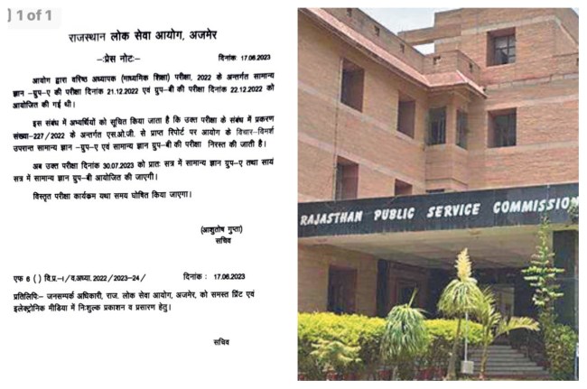 Ajmer:┬ардЖрд░рдкреАрдПрд╕рд╕реА рдиреЗ рд╕реАрдирд┐рдпрд░ рдЯреАрдЪрд░ рднрд░реНрддреА рдкреЗрдкрд░ рд▓реАрдХ рдорд╛рдорд▓реЗ рдореЗрдВ рдмреЬрд╛ рдлреИрд╕рд▓рд╛ рд▓реЗрддреЗ рд╣реБрдП рд╕рд╛рдорд╛рдиреНрдп рдЬреНрдЮрд╛рди рдХрд╛ рдЧреНрд░реБрдк рдП рдФрд░ рдмреА рдХрд╛ рдкреЗрдкрд░ рдирд┐рд░рд╕реНрдд рдХрд░ рджрд┐рдпрд╛ рд╣реИрдВред рдЕрдм 30 рдЬреБрд▓рд╛рдИ рдХреЛ рд╕рд╡рд╛ рдЖрда рд▓рд╛рдЦ рдЕрднреНрдпрд░реНрдереА рдлрд┐рд░ рд╕реЗ рдкрд░реАрдХреНрд╖рд╛ рджреЗрдВрдЧреЗред рдЖрд░рдкреАрдПрд╕рд╕реА рдХреЗ рдЬрд╛реЕрдЗрдВрдЯ рд╕реЗрдХреНрд░реЗрдЯрд░реА рдиреЗ рдмрддрд╛рдпрд╛ рдХрд┐ рдПрд╕рдУрдЬреА рд╕реЗ рдорд┐рд▓реА рд░рд┐рдкреЛрд░реНрдЯ рдХреЗ рдЕрдиреБрд╕рд╛рд░ 21 рджрд┐рд╕рдВрдмрд░ 2022 рдХреЛ рдЖрдпреЛрдЬрд┐рдд рд╣реБрдП рд╕рд╛рдорд╛рдиреНрдп рдЬреНрдЮрд╛рди рдЧреНрд░реБрдк-рдП рдФрд░ 22 рджрд┐рд╕рдВрдмрд░ 2022 рдХреЛ рдЖрдпреЛрдЬрд┐рдд рд╕рд╛рдорд╛рдиреНрдп рдЬреНрдЮрд╛рди рдЧреНрд░реБрдк-рдмреА рдХреА рдкрд░реАрдХреНрд╖рд╛рдУрдВ рдХреЛ рдирд┐рд░рд╕реНрдд рдХрд┐рдпрд╛ рдЧрдпрд╛ рд╣реИред