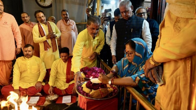 #WATCH | Former Rajasthan CM & BJP leader Vasundhara Raje Scindia offered prayers at Mehandipur Balaji temple in Rajasthan's Dausa. pic.twitter.com/rEj5CPcwY4