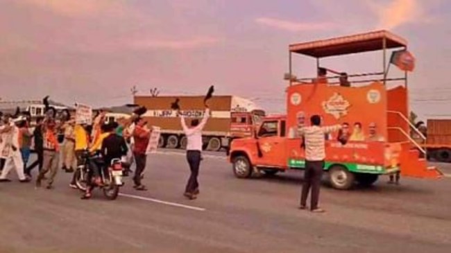 परिवर्तन संकल्प यात्रा के सरूपगंज टोल नाका पहुंचने से पहले यूपी राज्य प्रमुख जनार्दन शर्मा, जिला प्रमुख रमेश रावल, आबूरोड शहर प्रमुख लालाराम खारवाल, तहसील प्रमुख नरेश लोधी, स्वरूपगंज प्रखंड प्रमुख नरेंद्रसिंह, रोहिड़ा नगर प्रमुख हरिदास वैष्णव एवं ईश्वर रावल आदि यहां पहुंच गए। जैसे ही यात्रा टोल नाका से निकली शिव सैनिकों ने काले झंडे दिखाकर इसका विरोध किया। इस दौरान भाजपा पर लोगों के साथ वादाखिलाफी और विश्वासघात करने का आरोप भी लगाया गया।