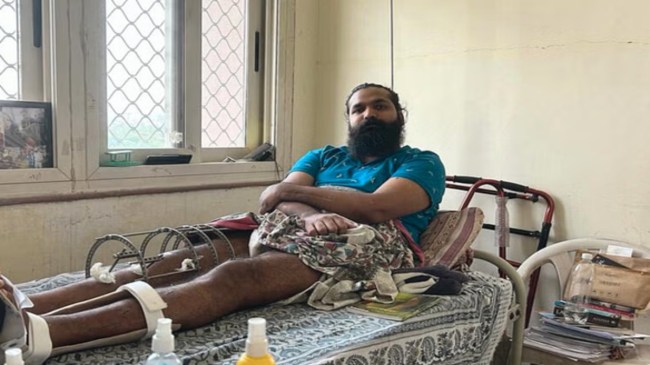 рдЬрдпрдкреБрд░ рдХреЗ рдПрд╕рдПрдордПрд╕ рдЕрд╕реНрдкрддрд╛рд▓ рдореЗрдВ рд╣рд░реНрд╖рд╛рдзрд┐рдкрддрд┐ рд╡рд╛рд▓реНрдорд┐рдХреА рдзрд╛рддреБ рдХреЗ рдмреНрд░реЗрд╕рд┐рдЬрд╝ рд╕реЗ рдврдВрдХреЗ рд╣реБрдП рдФрд░ рдХрдИ рдШрд╛рд╡реЛрдВ рдХреЗ рдирд┐рд╢рд╛рди рд╡рд╛рд▓реЗ рдЕрдкрдиреЗ рдШрд╛рдпрд▓ рдкреИрд░ рдХреЛ рдШреВрд░ рд░рд╣реЗ рд╣реИрдВред рд▓рдЧрднрдЧ 19 рдорд╣реАрдиреЗ рд╣реЛ рдЧрдП рд╣реИрдВ рдЬрдм 28 рд╡рд░реНрд╖реАрдп рд╡реНрдпрдХреНрддрд┐ рдмрд┐рдирд╛ рдХрд┐рд╕реА рд╕рд╣рд╛рд░реЗ рдХреЗ рдЪрд▓ рд╕рдХрд╛ рд╣реЛред рдЕрд╕реНрдкрддрд╛рд▓ рдореЗрдВ рдЕрдкрдиреЗ рдХрдорд░реЗ рдореЗрдВ рд╣рд░реНрд╖рд╛рдзрд┐рдкрддрд┐ рджрд┐рди рднрд░ рдмрд┐рд╕реНрддрд░ рдкрд░ рд╣реА рд░рд╣рддреЗ рд╣реИрдВред рдХрднреА-рдХрднреА, рд╡рд╣ рдмрд╛рд╣рд░ рдХреЗ рдЯреНрд░реИрдлрд╝рд┐рдХ рдХреЛ рджреЗрдЦрдиреЗ рдХреЗ рд▓рд┐рдП рдЦрд┐рдбрд╝рдХреА рд╕реЗ рдмрд╛рд╣рд░ рдЭрд╛рдБрдХрддреЗ рд╣реИрдВред рдПрдХ рд╕рд░рдХрд╛рд░реА рдбреЙрдХреНрдЯрд░ рдиреЗ рдХрд╣рд╛ рдХрд┐ рд╣рд░реНрд╖рд╛рдзрд┐рдкрддрд┐ рдХреЛ рдХрдИ рдлреНрд░реИрдХреНрдЪрд░ рд╣реБрдП рд╣реИрдВ, рдЬрд┐рд╕рдореЗрдВ рдлреАрдорд░ рдХрд╛ рдлреНрд░реИрдХреНрдЪрд░ рднреА рд╢рд╛рдорд┐рд▓ рд╣реИред