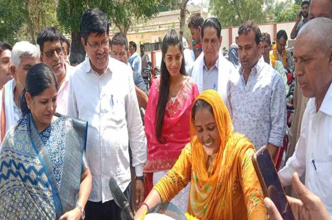 राज्यमंत्री मुरारी लाल मीणा व नगर परिषद सभापति ममता चौधरी ने शुक्रवार को दौसा जिले के डाक बगंले में दिव्यांगजनों को स्कूटी वितरित की। स्कूटी पाकर दिव्यांगजन बीना बैरवा ढिगारिया की आंखों में खुशी के आंसू छलक उठे।