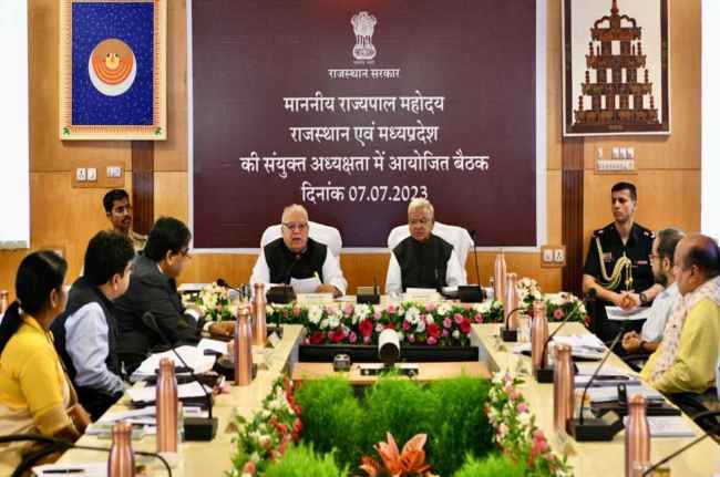 राज्यपाल मिश्र ने कहा कि मध्यप्रदेश के 6 जिलों और राजस्थान के 9 जिलों की सीमाएं एक-दूसरे से लगती हैं। ऐसे में जरूरी है कि इन सीमावर्ती जिलों में अपराध और अवैध गतिविधियों पर नियंत्रण एवं रोकथाम के लिए कारगर सुरक्षा तंत्र विकसित किया जाए। बैठक में मध्यप्रदेश के राज्यपाल के प्रमुख सचिव डीपी आहूजा, राज्यपाल मिश्र के प्रमुख सचिव सुबीर कुमार, प्रमुख विशेषाधिकारी गोविन्दराम जायसवाल, कोटा संभागीय आयुक्त प्रतिभा सिंह, उदयपुर संभागीय आयुक्त राजेन्द्र भट्ट, दोनों राज्यों के सीमावर्ती जिलों के जिला कलेक्टर, पुलिस अधीक्षक एवं अन्य अधिकारीगण उपस्थित रहे।