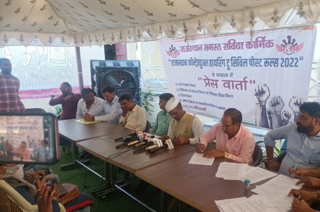 जबकि, सरकार की ओर से हालही में राजस्थान कॉन्ट्रैक्चूअल हायरिंग टू सिविल पोस्ट रूल्स 2022 के माध्यम से पुन: संविदाकर्मियों की पिछली नौकरी को शून्य मानते हुए अन्य परिलाभों में कटौती कर एक बार फिर संविदा पर ही रखने का निर्णय किया है। जिससे सभी संविदाकर्मियों में भारी रोष है।