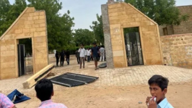 जैसलमेर विधायक छोटूसिंह के गांव पूनमनगर के सरकारी स्कूल का मुख्य द्वार गिरने से एक मासूम बच्ची की दर्दनाक मौत हो गई और एक शिक्षक घायल है जिसका जैसलमेर के अस्पताल में इलाज जारी है। pic.twitter.com/TYKYUpd0l8