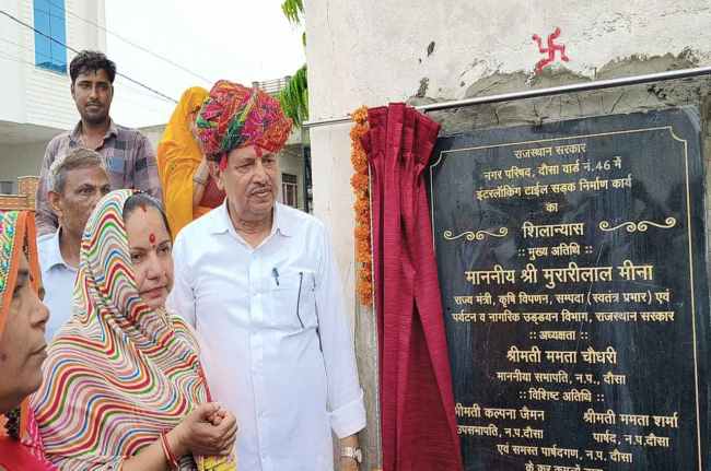 Dausa: कृषि विपणन मंत्री मुरारी लाल मीणा शनिवार को दौसा विधानसभा क्षेत्र के दौरे पर रहे। मंत्री मीणा ने नगर परिषद क्षेत्र के आधा दर्जन वार्डों में सड़कों का शिलान्यास किया।
