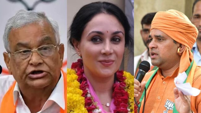 рдмреАрдЬреЗрдкреА рдХреЗ рд╕рд╛рдВрд╕рдж рдирд░реЗрдВрджреНрд░ рдХреБрдорд╛рд░ рдЭреБрдВрдЭреБрдиреВрдВ рдХреА рдордВрдбрд╛рд╡рд╛, рджреАрдпрд╛ рдХреБрдорд╛рд░реА рдЬрдпрдкреБрд░ рдХреА рд╡рд┐рджреНрдпрд╛рдзрд░ рдирдЧрд░, рдмрд╛рд▓рдХрдирд╛рде рдЕрд▓рд╡рд░ рдХреА рддрд┐рдЬрд╛рд░рд╛, рд░рд╛рдЬреНрдпрд╕рднрд╛ рд╕рд╛рдВрд╕рдж рдХрд┐рд░реЛрдбрд╝реА рд▓рд╛рд▓ рдореАрдгрд╛ рд╕рд╡рд╛рдИ рдорд╛рдзреЛрдкреБрд░ рдФрд░ рд╕рд╛рдВрд╕рдж рднрд╛рдЧреАрд░рде рдЪреМрдзрд░реА рдЕрдЬрдореЗрд░ рдХреА рдХрд┐рд╢рдирдЧрдврд╝ рд╕реАрдЯ рд╕реЗ рдореИрджрд╛рди рдореЗрдВ рд╣реИрдВред рд╕рд╛рдВрд╕рдж рд░рд╛рдЬреНрдпрд╡рд░реНрдзрди рд╕рд┐рдВрд╣ рд░рд╛рдареМрдбрд╝ рдЭреЛрдЯрд╡рд╛рдбрд╝рд╛ рдФрд░ рджреЗрд╡рдЬреА рдкрдЯреЗрд▓ рдХреЛ рд╕рд╛рдВрдЪреМрд░ рд╕реЗ рдореИрджрд╛рди рдореЗрдВ рдЙрддрд╛рд░рд╛ рдЧрдпрд╛ рд╣реИред