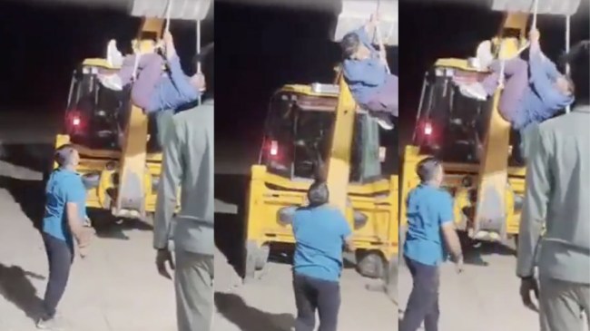 जेसीबी से लटकाया