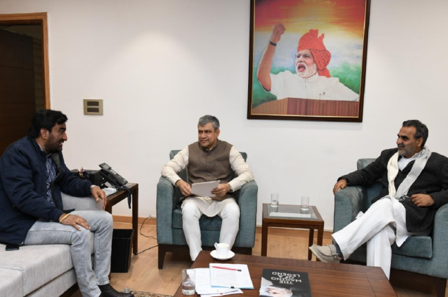 आज दिल्ली स्थित रेल भवन में रेल मंत्री श्री @AshwiniVaishnaw जी से मुलाकात कर नागौर में चल रहे विख्यात श्री रामदेव पशु मेले में पशुओं के परिवहन हेतु विशेष ट्रेन संचालन करने के मांग के संदर्भ में विस्तृत चर्चा की और मंत्री जी ने ट्रेन संचालन हेतु तत्काल सहमति व्यक्त की
