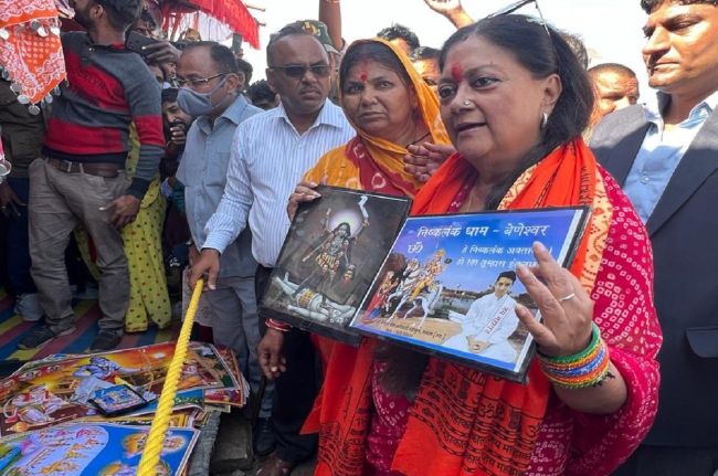 वसुंधरा राजे ने शुक्रवार को एक वीडियो जारी करते हुए कहा, ‘मैं भगवान भरोसे हूं। अब तक जो भी काम हुए हैं, वह सब कुछ भगवान के ही भरोसे हुआ है। हम घर सजाकर छोड़ देते हैं। हम जनता की आशाओं के अनुसार योजनाओं पर काम शुरू करते हैं और कांग्रेस आकर सिर्फ फीता काटने का काम करती है।