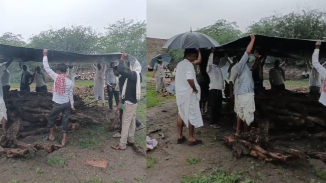 Rajasthan News: वैसे राजस्थान सुदूर इलाके आज भी कई सुविधाओं से वंचित हैं लेकिन रविवार को राजस्थान के पाली से हैरान कर देने वाली खबर सामने आई है। पाली जिले के रोहट क्षेत्र के राणा गांव में 90 साल की फाऊ देवी प्रजापत का निधन हो गया। अंतिम संस्कार के लिए जब ग्रामीण शव लेकर श्मशान पहुंचे तो बारिश होने लगी। खुले में अंतिम संस्कार होने की वजह से महिला का शव और लकड़ियां गीली होने लगी। आनन-फानन में लोगों ने त्रिपाल की व्यवस्था की और करीब 10 लोग महिला और लकड़ियों को बचाने के लिए त्रिपाल लेकर चारो तरफ खड़े हो गए।