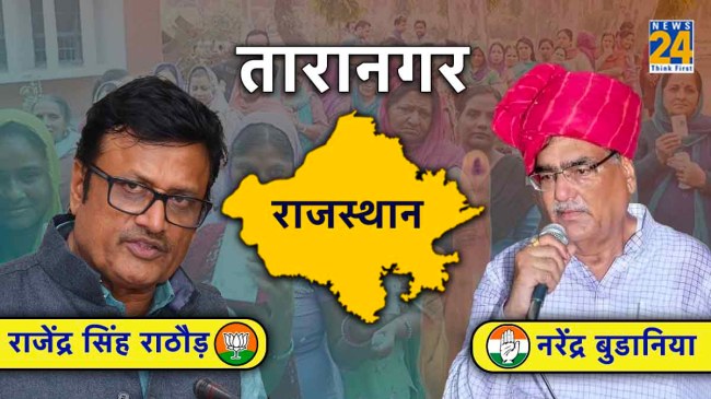 Taranagar Rajasthan Assembly Elections Result 2023 LIVE : राजस्थान में विधानसभा चुनाव 2023 के सभी परिणाम सामने आ चुके हैं। यहां की तारानगर विधानसभा सीट से 10345 वोटों के साथ कांग्रेस प्रत्याशी नरेंद्र बुडानिया चुनाव जीत गए हैं। उनको 108236 वोट मिले। भाजपा ने इस बार यहां राजेंद्र सिंह राठौड़ को उतारा था, उनको 97891 वोट हासिल हुए हैं। राठौड़ को यहां से चुनाव लड़ाने में भाजपा का मकसद इस सीट को अपने खाते में जोड़ना था। तारानगर विधानसभा सीट के लिए मतदान 25 नवंबर को हुआ था और मतगणना तीन दिसंबर को हुई।
