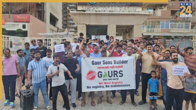 Greater Noida News: ग्रेटर नोएडा वेस्ट के गौर सिटी स्थित एवेन्यू-7 सोसायटी में 3 वर्षों से लंबित फ्लैट रजिस्ट्री को लेकर रविवार को फ्लैट खरीदारों का गुस्सा फूट पड़ा। सैकड़ों परेशान खरीदारों ने सोसायटी परिसर में मार्च निकालकर प्रबंधन के खिलाफ नारेबाजी की और मेंटेनेंस कार्यालय का घेराव किया। प्रदर्शनकारी खरीदारों ने चेतावनी दी कि यदि शीघ्र रजिस्ट्री की प्रक्रिया शुरू नहीं की गई तो वे मेंटेनेंस शुल्क का भुगतान रोक देंगे।