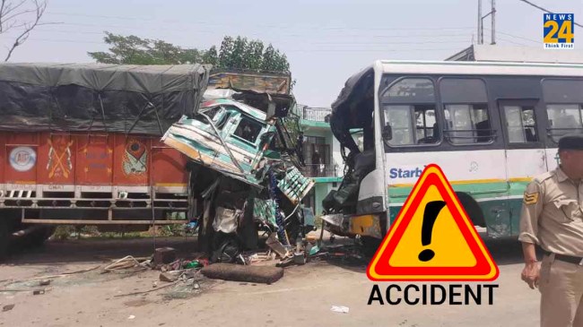 Road accident in Bahraich Uttar Pradesh: उत्तर प्रदेश के बहराइच में एक बड़ी सड़क दुर्घटना हो गई है। यहां एक डबल डेकर बस और ट्रक की आमने-सामने टक्कर में 3 लोगों की मौत हो गई। इस हादसे में करीब 25 लोगों के घायल होने की खबर है। मृतकों में बस चालक भी शामिल है। तीनों लोगों की मौके पर ही मौत हो गई। रिपोर्ट्स के मुताबिक यह बस गुजरात के राजकोट से आ रही थी और यूपी के बलरामपुर जा रही थी। हादसा कोतवाली देहात क्षेत्र में बहराइच-श्रावस्ती मार्ग पर धरसवां गांव के पास हुआ।
