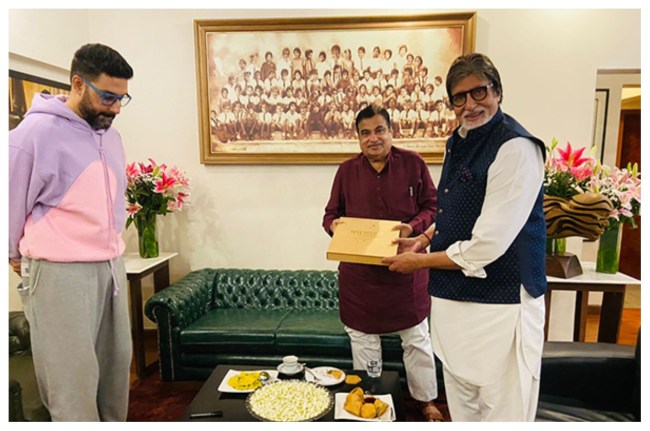 Amitabh Bachchan, Abhishek Bachchan meet Union Minister Nitin Gadkari to support National Road Safety Mission across India