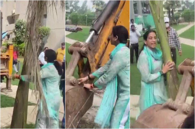 Shrikant Tyagi Case: उत्तर प्रदेश (Uttar Pradesh) के नोएडा (Noida) में सेक्टर-93बी स्थित ग्रैंड ओमेक्स सोसायटी (Grand Omaxe Society) में शुक्रवार को बुल्डोजर चला। इस दौरान सोसायटी में हड़कंप मच गया। वहीं श्रीकांत त्यागी (Shrikant tyagi) की पत्नी अनु त्यागी (Anu Tyagi) द्वारा दोबारा उसी स्थान पर लगाए पेड़ों को हटाने के लिए बुल्डोजर पहुंचा, तो श्रीकांत की पत्नी पेड़ों से लिपट गई। उनकी तस्वीरें और वीडियो सोशल मीडिया पर वायरल हुई हैं। बता दें कि शुक्रवार को भारी संख्या में पुलिस फोर्स के साथ प्राधिकरण की टीम यहां पहुंची थी।