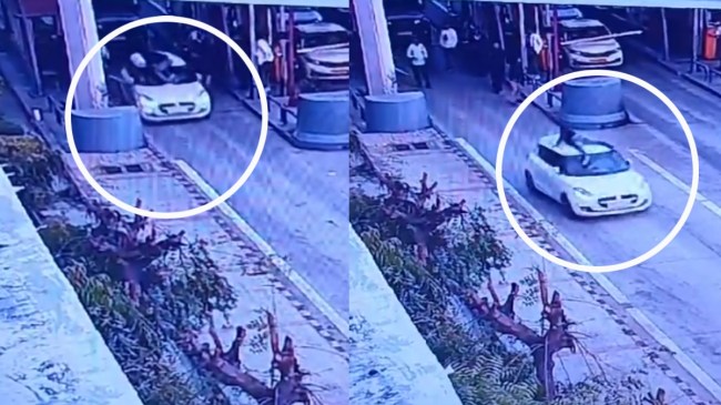рдХреБрдЫ рджреЗрд░ рдмрд╣рд╕ рдХреЗ рдмрд╛рдж рдЬрдм рдХрд╛рд░ рдЪрд╛рд▓рдХ рдХрд╛рд░ рд▓реЗрдХрд░ рднрд╛рдЧрдиреЗ рдХреА рдХреЛрд╢рд┐рд╢ рдХрд░рдиреЗ рд▓рдЧрд╛ рддреЛ рдПрдХ рдХрд░реНрдордЪрд╛рд░реА рдХрд╛рд░ рдХреА рдмреЛрдирдЯ рдкрд░ рдЪреЭрдХрд░ рд╡рд┐рдВрдбрд╢реАрд▓ рдкрд░ рдореБрдХреНрдХреЗ рдорд╛рд░рдиреЗ рд▓рдЧрд╛ред рдЗрд╕рдХреЗ рдмрд╛рдж рдХрд╛рд░ рдЪрд╛рд▓рдХ рддреЗрдЬреА рд╕реЗ рдХрд╛рд░ рд▓реЗрдХрд░ рднрд╛рдЧрдиреЗ рд▓рдЧрд╛ред рдмрддрд╛рдпрд╛ рдЬрд╛ рд░рд╣рд╛ рд╣реИ рдХрд┐ рд▓рдЧрднрдЧ рдПрдХ рдХрд┐рдореА рддрдХ рдЯреЛрд▓рдХрд░реНрдореА рдХрд╛рд░ рдХреА рдмреЛрдирдЯ рдкрд░ рд▓рдЯрдХрд╛ рдерд╛ред рдПрдХ рдХрд┐рдореА рджреВрд░ рдЬрд╛рдиреЗ рдХреЗ рдмрд╛рдж рдЯреЛрд▓рдХрд░реНрдореА рдЧрд┐рд░ рдкреЬрд╛ред