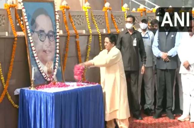 #WATCH | Lucknow: Bahujan Samaj Party Chief Mayawati pays tribute to Dr Bhim Rao Ambedkar on his birth anniversary today pic.twitter.com/QxV6fURsl3
