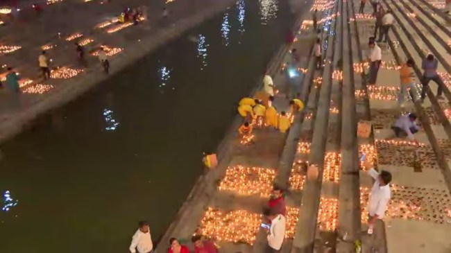 рд░рд╛рдордирд╡рдореА рдХреЗ рдореМрдХреЗ рдкрд░ рдЖрдЬ рджреЗрд╢рднрд░ рдореЗрдВ рд╢реЛрднрд╛рдпрд╛рддреНрд░рд╛рдПрдВ рдирд┐рдХрд╛рд▓реА рдЧрдИрдВред рдЗрд╕ рдмреАрдЪ рдЖрдЬ рднрдЧрд╡рд╛рди рд╢реНрд░реАрд░рд╛рдо рдХреА рдирдЧрд░реА рдЕрдпреЛрдзреНрдпрд╛ рдореЗрдВ рднреА рд░рд╛рдордирд╡рдореА рдХреЗ рдореМрдХреЗ рдкрд░ рд╕рд░рдпреВ рдХреЗ рдШрд╛рдЯ рдкрд░ 2 рд▓рд╛рдЦ рджреАрдпреЗ рдЬрд▓рд╛рдП рдЧрдП рд╣реИрдВред рдЕрдпреЛрдзреНрдпрд╛ рдЖрдЬ рдПрдХ рдмрд╛рд░ рдлрд┐рд░ рджрд┐рд╡рд╛рд▓реА рдЬреИрд╕реА рд╣реА рдирдЬрд░ рдЖ рд░рд╣реА рд╣реИред рдЪрдкреНрдкреЗ-рдЪрдкреНрдкреЗ рдкрд░ рд░реЛрд╢рдиреА рд╣реИред рдХрд░реАрдм 5 рд▓рд╛рдЦ рд▓реЛрдЧ рдЖрдЬ рдЕрдпреЛрдзреНрдпрд╛ рдореЗрдВ рд╣реИрдВред рдордВрджрд┐рд░реЛрдВ рдореЗрдВ рд╢рдВрдЦрдирд╛рдж рд╣реЛ рд░рд╣реЗ рд╣реИрдВред рд╕рд░рдпреВ рдХрд╛ рддрдЯ рджреАрдкреЛрдВ рдХреА рд░реЛрд╢рдиреА рд╕реЗ рдЬрдЧрдордЧ рд╣реИред