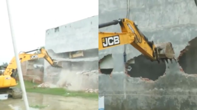 #WATCH | Ayodhya gang-rape incident | Police and administration carry out demolition drive at shopping complex owned by accused SP leader, for illegal construction. pic.twitter.com/r9TXr7Lidw