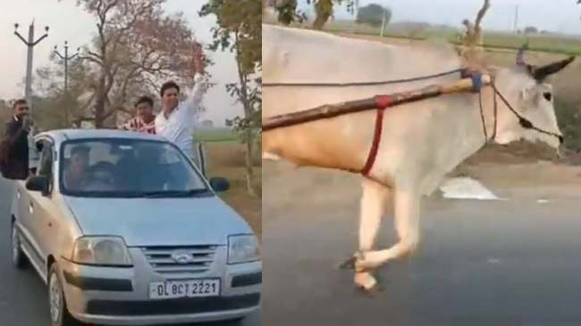 рд╡рд╛рдпрд░рд▓ рд╡реАрдбрд┐рдпреЛ рдореЗрдВ рдХреБрдЫ рдмреИрд▓ рдЧрд╛рдбрд╝реА рджреМрдбрд╝рд╛ рд░рд╣реЗ рд╣реИрдВред рдЗрд╕рдХреЗ рд╕рд╛рде рд╣реА рдмреИрд▓ рдЧрд╛рдбрд╝реА рдХреЗ рдЖрдЧреЗ рдФрд░ рдкреАрдЫреЗ рдХрд╛рд░ рдХреА рдбрд┐рдХреНрдХреА рдФрд░ рдЦрд┐рдбрд╝рдХреА рдЦреЛрд▓рдХрд░ рд╕реНрдЯрдВрдЯрдмрд╛рдЬреА рдХрд░рддреЗ рджрд┐рдЦ рд░рд╣реЗ рд╣реИрдВред рдмреИрд▓ рдЧрд╛рдбрд╝реА рдХреЗ рдкреАрдЫреЗ рдЪрд▓ рд░рд╣реА 2 рдХрд╛рд░реЛрдВ рдореЗрдВ рд╕рд╡рд╛рд░ рдХреБрдЫ рдпреБрд╡рдХ рдЦрд┐рдбрд╝рдХрд┐рдпреЛрдВ рд╕реЗ рдмрд╛рд╣рд░ рдирд┐рдХрд▓рдХрд░ рд╕реНрдЯрдВрдЯ рдХрд░ рд░рд╣реЗ рд╣реИрдВред рдЗрд╕рдХреЗ рд╕рд╛рде рд╣реА рдпреЗ рд▓реЛрдЧ рд╡реАрдбрд┐рдпреЛ рднреА рдмрдирд╛ рд░рд╣реЗ рд╣реИрдВред рдмреИрд▓ рдЧрд╛рдбрд╝реА рдореЗрдВ рд╕рд╡рд╛рд░ 2 рдпреБрд╡рдХ рдмреИрд▓ рдХреЛ рд▓рдЧрд╛рддрд╛рд░ рджреМрдбрд╝рд╛ рд░рд╣реЗ рд╣реИрдВред