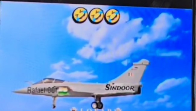 वीडियो में एक राफेल विमान दिखाया गया है, जिस पर भारतीय तिरंगा और “सिंदूर” लिखा हुआ है। इसके बाद J-10C जेट की एंट्री होती है, जिस पर चांद-तारा का चिन्ह लगा हुआ है। इस एडिटेड वीडियो को आपत्तिजनक रूप में प्रस्तुत कर सोशल मीडिया पर वायरल किया गया है।