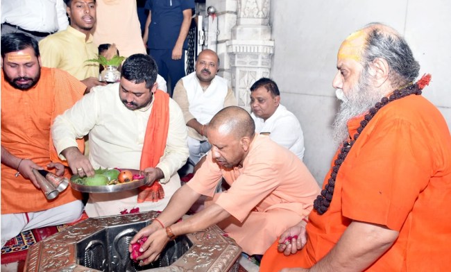 सीएम योगी पूजा-अर्चना करते हुए[/caption]