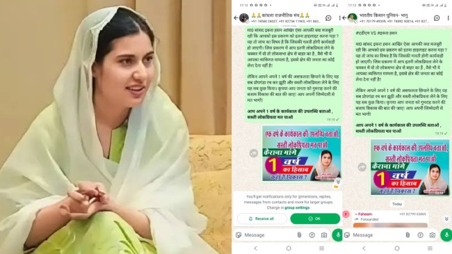 लोकसभा की जनता ने एक पोस्टर बनाया और मैसेज लिखा। पोस्टर में लिखा कि 1 साल के कार्यकाल की उपलब्धि बताओ, सस्ती लोकप्रिय मत पाओ। कैराना मांगे 1 साल का हिसाब, कहां है विकास। इतना लिखने के बाद पोस्टर में सांसद इकरा हसन की फोटो लगी है। पोस्टर के साथ एक मैसेज भी वायरल हो रहा, जिसमें लिखा है कि मा. सांसद आखिर ऐसी आपकी क्या मजबूरी रही कि आपको इस मामले (नगर पंचायत अध्यक्ष शमा) को इतना हाइलाइट करना पड़ा। यह तो जांच का विषय है कि जिसकी गलती होगी कार्रवाई हो जाएगी। जिस प्रकरण में आप इतनी सस्ती लोकप्रियता लेने के चक्कर में हैं, वो तो आपके लोकसभा के बाहर का मामला है। वैसे भी ये आपका व्यक्तिगत मामला है, इससे क्षेत्र की जनता को कोई लेना देना नहीं है।