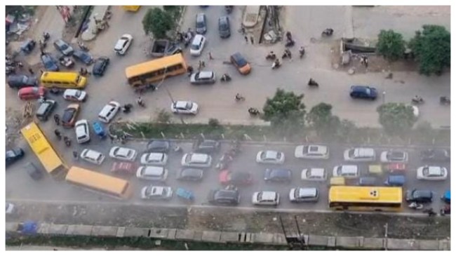 सोसायटी में रहने वाले लोगों का कहना है कि पड़ोस में ही SKS World School है। स्कूल बसे रोजाना सुबह व दोपहर के समय जाम में फंस जाती है। स्कूल आने-जाने वाले बच्चों को इससे दिक्कत होती है। वायरल वीडियो में देखा गया है कि करीब आधा दर्जन से अधिक बसों की स्पीड धीमी है। इसका कारण है कि जाम लगा हुआ है।