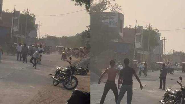उत्तर प्रदेश के हापुड़ जिले में सड़क पर दो पक्षों के बीच जमकर पथराव हुआ। इसका एक वीडियो सोशल मीडिया पर तेजी से वायरल हो रहा है, जिसे देखकर ऐसा प्रतीत होता है जैसे सड़क पर कोई जंग छिड़ गई हो। मामूली से विवाद ने ऐसा तूल पकड़ा कि स्थिति हिंसक हो गई और दोनों पक्षों के बीच जमकर पत्थरबाजी हुई।