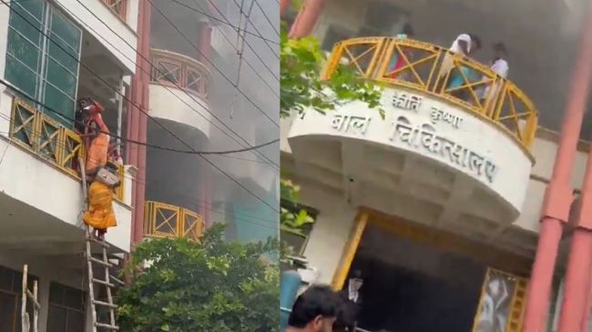 सामने आए वीडियो में देखा जा सकता है कि अस्पताल की पहली मंजिल से नीचे उतरने के लिए लोग सीढ़ी का प्रयोग कर रहे हैं जबकि कुछ धोती की रस्सी बनाकर नीचे उतर रहे हैं। सोशल मीडिया पर इसका वीडियो वायरल हो रहा है। करीब 20 बच्चों की जान बचाई जा चुकी है। घटना की सूचना मिलने के बाद फायर डिपार्टमेंट से जुड़े लोग मौके पर पहुंच गए और आग बुझाने में जुट गए।