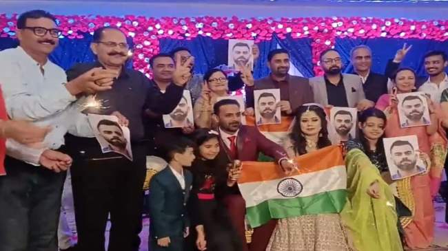 рдореБрд░рд╛рджрд╛рдмрд╛рдж рдореЗрдВ рдПрдХ рд╢рд╛рджреА рд░рдЪрд╛рдИ рдЧрдИ, рдЬрд╣рд╛рдВ рджреВрд▓реНрд╣рд╛ рдФрд░ рджреБрд▓реНрд╣рди рдХреЗ рд╕рд╛рде-рд╕рд╛рде рд╢рд╛рджреА рдореЗрдВ рд╢рд╛рдорд┐рд▓ рд╣реБрдП рд░рд┐рд╢реНрддреЗрджрд╛рд░реЛрдВ рдиреЗ рд╡рд┐рд░рд╛рдЯ рдХреЛрд╣рд▓реА рдХреА рддрд╕реНрд╡реАрд░ рд▓реЗрдХрд░ рдкреЛрдЬ рджрд┐рдпрд╛ред рдЗрд╕ рдореМрдХреЗ рдкрд░ рджреВрд▓реНрд╣реЗ рдиреЗ рдХрд╣рд╛, “рдпрд╣ рдореЗрд░реЗ рд▓рд┐рдП ‘рдбрдмрд▓ рдзрдорд╛рдХрд╛’ рд╣реИ рдХреНрдпреЛрдВрдХрд┐ рдЖрдЬ рдореЗрд░реА рд╢рд╛рджреА рд╣реИ рдФрд░ рднрд╛рд░рдд рднреА рдЖрдЬ рд╢рд╛рдирджрд╛рд░ рдЬреАрдд рджрд░реНрдЬ рдХрд┐рдпрд╛ рд╣реИред рд╕рд╛рде рд╣реА рд╡рд┐рд░рд╛рдЯ рдХреЛрд╣рд▓реА рдиреЗ рд╕рдЪрд┐рди рддреЗрдВрджреБрд▓рдХрд░ рдХреЗ рд░рд┐рдХреЙрд░реНрдб рдХреА рдмрд░рд╛рдмрд░реА рдХрд░ рд▓реА рд╣реИред” рд╡рд╣реАрдВ, рджреБрд▓реНрд╣рди рдиреЗ рдХрд╣рд╛, “рдпрд╣ рдЖрд╢реНрдЪрд░реНрдпрдЬрдирдХ рд▓рдЧрддрд╛ рд╣реИред рд╣рдо рдЗрд╕ рджрд┐рди рдХреЛ рд╣рдореЗрд╢рд╛ рдпрд╛рдж рд░рдЦреЗрдВрдЧреЗред”