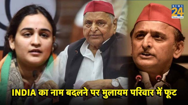 India vs Bharat Renaming row: देश का नाम INDIA से बदलकर पूरी तरह भारत किए जाने की चर्चा जोरों पर है। देशभर में इसको लेकर राजनीति गरमाई हुई है। इस बीच यूपी के पूर्व मुख्यमंत्री स्वर्गीय मुलायम सिंह यादव की बहू अपर्णा बिष्ट यादव ने परिवार से अलग बयान दिया है। उनका कहना है कि अगर उनके ससुर मुलायम सिंह जिंदा होते तो INDIA नाम बदलने पर वह भारतीय जनता पार्टी के होते।
