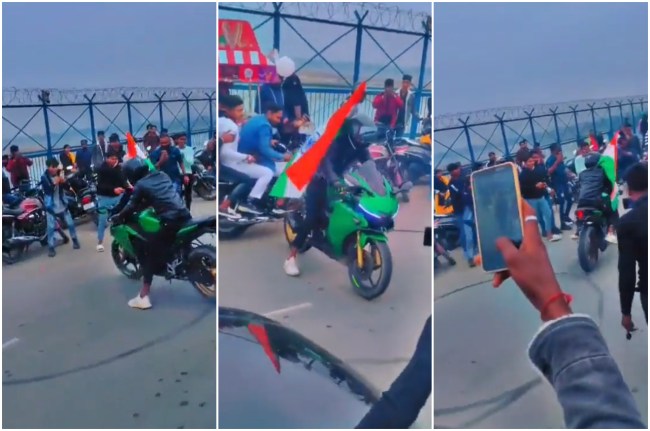 рдЬрд╛рдирдХрд╛рд░реА рдХреЗ рдореБрддрд╛рдмрд┐рдХ 26 рдЬрдирд╡рд░реА рдХреЛ рдХрд╛рдирдкреБрд░ рдореЗрдВ рдПрдХ рд╡реАрдбрд┐рдпреЛ рд╕реЛрд╢рд▓ рдореАрдбрд┐рдпрд╛ рдкрд░ рд╡рд╛рдпрд░рд▓ рд╣реБрдЖред рд╡реАрдбрд┐рдпреЛ рдореЗрдВ рджрд┐рдЦ рд░рд╣рд╛ рд╣реИ рдХрд┐ рдПрдХ рд╣рд░реЗ рд░рдВрдЧ рдХреА рд╕реНрдкреЛрд░реНрдЯреНрд╕ рдмрд╛рдЗрдХ рдкрд░ рд╕рд╡рд╛рд░ рдпреБрд╡рдХ рд╕реНрдЯрдВрдЯ рджрд┐рдЦрд╛ рд░рд╣рд╛ рд╣реИред рд╕рд╛рде рдореЗрдВ рдФрд░ рд▓реЛрдЧ рднреА рдЦрдбрд╝реЗ рд╣реИрдВред рд▓рдбрд╝рдХреЗ рдиреЗ рдмрд╛рдЗрдХ рдкрд░ рддрд┐рд░рдВрдЧрд╛ рдЭрдВрдбрд╛ рд▓реЗ рд░рдЦрд╛ рд╣реИред рд╕реНрдЯрдВрдЯ рдХрд░рддреЗ рд╣реБрдП рд╡рд╣ рд╕рдбрд╝рдХ рдкрд░ рдЯрд╛рдпрд░ рд╕реЗ рдЧреЛрд▓рд╛ рдмрдирд╛ рджреЗрддрд╛ рд╣реИред рд╡рд╣рд╛рдВ рдореМрдЬреВрдж рд▓реЛрдЧреЛрдВ рдиреЗ рдпреБрд╡рдХ рдХрд╛ рд╡реАрдбрд┐рдпреЛ рдмрдирд╛рдХрд░ рд╕реЛрд╢рд▓ рдореАрдбрд┐рдпрд╛ рдкрд░ рд╡рд╛рдпрд░рд▓ рдХрд░ рджрд┐рдпрд╛ред