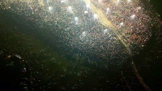 #WATCH | Prayagraj, UP | #MahaKumbhMela2025 | Drone visuals of Maha Kumbh Mela Kshetra, Triveni Sangam, as thousands of devotees gather for the third Amrit Snan on the occassion of Basant Panchami. pic.twitter.com/LtLjC083QP
