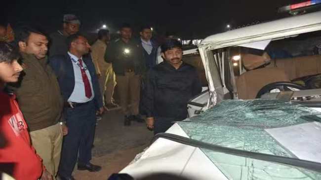 काफिले में शामिल एस्कॉर्ट वाहन ट्रैक्टर ट्रॉली से था टकराया,