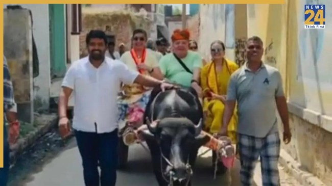 рдЧрд╛рдВрд╡ рдХреА рдЧрд▓рд┐рдпреЛрдВ рдореЗрдВ рднреНрд░рдордг рдХреЗ рджреМрд░рд╛рди рд╡рд┐рджреЗрд╢реА рдореЗрд╣рдорд╛рдиреЛрдВ рдиреЗ рдЧреНрд░рд╛рдореАрдгреЛрдВ рд╕реЗ рдЖрддреНрдореАрдпрддрд╛ рд╕реЗ рдорд┐рд▓рддреЗ рд╣реБрдП тАШрдирдорд╕реНрддреЗтАЩ рдХрд╣рд╛ рдФрд░ рднрд╛рд░рддреАрдп рдЕрднрд┐рд╡рд╛рджрди рд╢реИрд▓реА рдХреЛ рдЕрдкрдирд╛рдпрд╛. рдЧрд╛рдВрд╡ рдХреА рдорд╣рд┐рд▓рд╛рдУрдВ рд╕реЗ рдмрд╛рддрдЪреАрдд рдХрд░рддреЗ рд╣реБрдП рдЙрдиреНрд╣реЛрдВрдиреЗ рднрд╛рд░рддреАрдп рдЦрд╛рдирдкрд╛рди, рдЬреАрд╡рдирд╢реИрд▓реА рдФрд░ рд╕рд╛рдорд╛рдЬрд┐рдХ рдореВрд▓реНрдпреЛрдВ рдХреЗ рдмрд╛рд░реЗ рдореЗрдВ рдЬрд╛рдирдХрд╛рд░реА рд▓реА. рдЗрд╕ рджреМрд░рд╛рди рдЙрдиреНрд╣реЗрдВ рднреИрдВрд╕рд╛ рдмреБрдЧреНрдЧреА рдХреА рд╕рд╡рд╛рд░реА рднреА рдХрд░рд╛рдИ рдЧрдИ рдЬреЛ рдЙрдирдХреЗ рд▓рд┐рдП рдПрдХ рдирдпрд╛ рдФрд░ рд░реЛрдорд╛рдВрдЪрдХрд╛рд░реА рдЕрдиреБрднрд╡ рдерд╛.