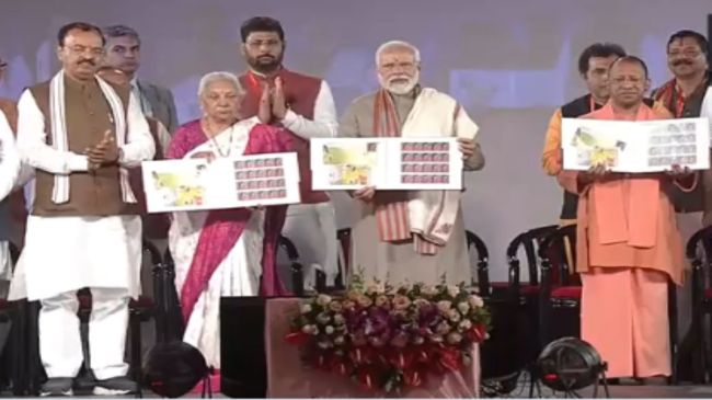 #WATCH | Prime Minister Narendra Modi releases a commemorative stamp in honour of Sant Mira Bai, in Mathura, Uttar Pradesh pic.twitter.com/izDCY4iY09