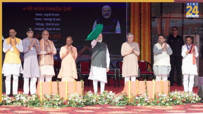 рдкреНрд░рдзрд╛рдирдордВрддреНрд░реА рдирд░реЗрдиреНрджреНрд░ рдореЛрджреА рдиреЗ рд╢рдирд┐рд╡рд╛рд░ рдХреЛ рдмрдирд╛рд░рд╕ рд░реЗрд▓рд╡реЗ рд╕реНрдЯреЗрд╢рди рд╕реЗ рдЪрд╛рд░ рдирдИ рд╡рдВрджреЗ рднрд╛рд░рдд рдЯреНрд░реЗрдиреЛрдВ рдХреЛ рд╣рд░реА рдЭрдВрдбреА рджрд┐рдЦрд╛рдХрд░ рд░рд╡рд╛рдирд╛ рдХрд┐рдпрд╛. рдЗрдирдореЗрдВ рд╡рд╛рд░рд╛рдгрд╕реА-рдЦрдЬреБрд░рд╛рд╣реЛ рд╡рдВрджреЗ рднрд╛рд░рдд рдПрдХреНрд╕рдкреНрд░реЗрд╕ рдХреЛ рдкреНрд░рдзрд╛рдирдордВрддреНрд░реА рдиреЗ рдмрдирд╛рд░рд╕ рд░реЗрд▓рд╡реЗ рд╕реНрдЯреЗрд╢рди рд╕реЗ рд░рд╡рд╛рдирд╛ рдХрд┐рдпрд╛, рдЬрдмрдХрд┐ рджрд┐рд▓реНрд▓реА-рдлрд┐рд░реЛрдЬрдкреБрд░, рд▓рдЦрдирдК-рд╕рд╣рд╛рд░рдирдкреБрд░ рдФрд░ рдПрд░реНрдирд╛рдХреБрд▓рдо-рдмреЗрдВрдЧрд▓реБрд░реВ рд╡рдВрджреЗ рднрд╛рд░рдд рдПрдХреНрд╕рдкреНрд░реЗрд╕ рдХреЛ рдЙрдиреНрд╣реЛрдВрдиреЗ рд╡рд░реНрдЪреБрдЕрд▓реА рдЭрдВрдбреА рджрд┐рдЦрд╛рдХрд░ рд░рд╡рд╛рдирд╛ рдХрд┐рдпрд╛.