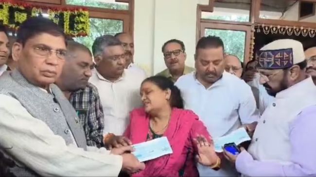 рдЖрдЧрд░рд╛ : рдЙрддреНрддрд░ рдкреНрд░рджреЗрд╢ рдХреЗ рдЖрдЧрд░рд╛ рд╕реЗ рдПрдХ рдмрд╣реБрдд рд╣реА рд╢рд░реНрдордирд╛рдХ рддрд╕реНрд╡реАрд░ рд╕рд╛рдордиреЗ рдЖрдИ рд╣реИред рдПрдХ рд╢рд╣реАрдж рд╡реАрд░ рд╕реИрдирд┐рдХ рдХреА рдорд╛рдВ рдХреА рдЖрдВрдЦреЛрдВ рд╕реЗ рдмрд╣ рд░рд╣реА рдЖрдВрд╕реБрдУрдВ рдХреА рдЧрдВрдЧрд╛-рдЬрдореБрдирд╛ рд░реБрдХрдиреЗ рдХрд╛ рдирд╛рдо рдирд╣реАрдВ рд▓реЗ рд░рд╣реА рдереА рдФрд░ рдмрд╛рд╡рдЬреВрдж рдЗрд╕рдХреЗ рд╢реЛ рдСрдл рдХреЗ рд╢реМрдХреАрди рдЙрд╕рдХреЗ рдЖрдВрд╕реБрдУрдВ рдХреА рдиреБрдорд╛рдЗрд╢ рдХрд░рддреЗ рд░рд╣реЗред рд╡рд╛рдХрдпрд╛ рдЙрд╕ рд╡рдХреНрдд рдХрд╛ рд╣реИ, рдЬрдм рдпреЛрдЧреА рдЖрджрд┐рддреНрдпрдирд╛рде рдХреЗ рдПрдХ рдордВрддреНрд░реА рдпреЛрдЧреЗрдВрджреНрд░ рдЙрдкрд╛рдзреНрдпрд╛рдп 2015 рдореЗрдВ рд╕реЗрдирд╛ рдореЗрдВ рднрд░реНрддреА рд╣реБрдП рд╕рд░рдХрд╛рд░реА рд╡рдХреАрд▓ рдХреЗ рдмреЗрдЯреЗ рд╢реБрднрдо рдЧреБрдкреНрддрд╛ (2018 рд╕реЗ рд╕реЗрдирд╛ рдХреА рд╡рд┐рд╢рд┐рд╖реНрдЯ рдкреИрд░рд╛рд╢реВрдЯ рд░реЗрдЬрд┐рдореЗрдВрдЯ рдХреА рдиреМрд╡реАрдВ рдмрдЯрд╛рд▓рд┐рдпрди рдореЗрдВ рдХреИрдкреНрдЯрди рдХреЗ рдкрдж рдкрд░ рддреИрдирд╛рдд) рдХреЗ рдШрд░ рд╕рдореНрдорд╛рдирд░рд╛рд╢рд┐ рдХрд╛ рдЪреЗрдХ рджреЗрдиреЗ рдкрд╣реБрдВрдЪреЗред рд╢рд▓ рдореАрдбрд┐рдпрд╛ рдкрд░ рд╡рд╛рдпрд░рд▓ рд╣реЛ рд░рд╣реЗ рдЗрд╕ рджреМрд░рд╛рди рдХреЗ рдПрдХ рд╡реАрдбрд┐рдпреЛ рдореЗрдВ рд╕рд╛рдл рджреЗрдЦрд╛ рдЬрд╛ рд╕рдХрддрд╛ рд╣реИ рдХрд┐ рд╢рд╣реАрдж рд╢реБрднрдо рдХреА рд╢реЛрдХрд╕рдВрддрдкреНрдд рдорд╛рдВ рдмрд╛рд░-рдмрд╛рд░ ‘рдпрд╣ рдкреНрд░рд░реНрджрд╢рдиреА рдордд рд▓рдЧрд╛рдУ’ рдХреА рдЕрдкреАрд▓ рдХрд░ рд░рд╣реА рд╣реИрдВ, рд▓реЗрдХрд┐рди рдмрд╛рд╡рдЬреВрдЗ рдЗрд╕рдХреЗ рдиреЗрддрд╛ рдФрд░ рдЙрдирдХреЗ рдЪрд╣реЗрддреЗ рдлреЛрдЯреЛ рдЦрд┐рдВрдЪрд╡рд╛рдиреЗ рдореЗрдВ рд╡реНрдпрд╕реНрдд рд╣реИрдВред