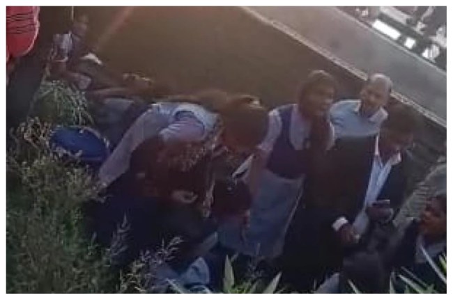 рдЬрд╛рдирдХрд╛рд░реА рдХреЗ рдореБрддрд╛рдмрд┐рдХ рдЬрд┐рд╕ рд╕рдордп рд╣рд╛рджрд╕рд╛ рд╣реБрдЖ рдЙрд╕ рд╕рдордп рдмрд╕ рдореЗрдВ рдХреБрд▓ рдХрд░реАрдм 56 рд▓реЛрдЧ рд╕рд╡рд╛рд░ рдереЗред рдмрд╕ рдореЗрдВ рдмрдЪреНрдЪреЛрдВ, рджреЛ рдмрд╕ рд╕реНрдЯрд╛рдл рд╕рдореЗрдд, 6 рдЯреАрдЪрд░ рдереЗред рд╣рд╛рджрд╕реЗ рдХреЗ рд╕рд╣реА рдХрд╛рд░рдгреЛрдВ рдХрд╛ рдЕрднреА рдкрддрд╛ рдирд╣реАрдВ рдЪрд▓рд╛ рд╣реИред рд╣рд╛рджрд╕реЗ рдХреЗ рдмрд╛рдж рдореМрдХреЗ рдкрд░ рдЪреАрдЦ рдкреБрдХрд╛рд░ рдордЪ рдЧрдИред рдЖрд╕рдкрд╛рд╕ рдХреЗ рд▓реЛрдЧ рдорджрдж рдХреЗ рд▓рд┐рдП рджреМрдВрдбрд╝реЗред рдорд╛рдорд▓реЗ рдХреА рд╕реВрдЪрдирд╛ рдкреБрд▓рд┐рд╕ рдХреЛ рджреА рдЧрдИред рдШрдЯрдирд╛рд╕реНрдерд▓ рдкрд░ рдмрдЪрд╛рд╡ рджрд▓ рдкрд╣реБрдВрдЪрд╛ред рдорд░рдиреЗ рд╡рд╛рд▓реЛрдВ рдХреА рд╕рдВрдЦреНрдпрд╛ рдмрдврд╝ рд╕рдХрддреА рд╣реИред рд╕реНрдерд╛рдиреАрдп рдкреНрд░рд╢рд╛рд╕рди рдлрд┐рд▓рд╣рд╛рд▓ рдмрдЪрд╛рд╡ рдХрд╛рд░реНрдп рдореЗрдВ рд▓рдЧрд╛ рд╣реИред рдШрд╛рдпрд▓реЛрдВ рдХреЛ рд╕рдореАрдк рдХреЗ рдЕрд╕реНрдкрддрд╛рд▓ рдореЗрдВ рднрд░реНрддреА рдХрд░рд╛рдпрд╛ рдЧрдпрд╛ рд╣реИред