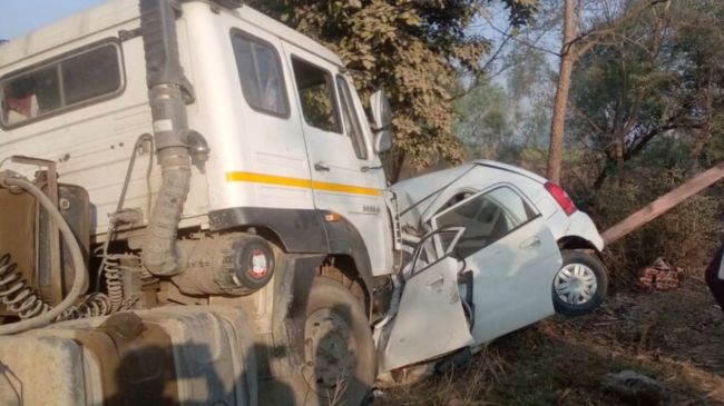 बहराइच में मटेरा थाना क्षेत्र में करीम बेहड़ गांव के पास मंगलवार सुबह कार और डंपर में टक्कर हो गई। कैसरगंज की ओर से आ रही डंपर ने अनियंत्रित होकर टक्कर मार दी। इस हादसे में 3 महिलाओं और सेना के फौजी समेत एक ही परिवार के 5 लोगों की मौत हो गई। हादसा इतना भयंकर था कि पुलिस ने कार को जेसीबी की मदद से बाहर निकलवाया। इस हादसे के बाद रोड पर जाम लग गया।